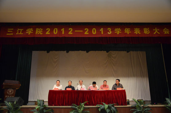5月15日晚6时,beat365在三江会堂隆重召开2012—2013学年表彰大会。beat365vip官网登录入口副校长、党委副书记武正林教授等领导出席表彰大会并为先进个人和集体颁奖。各院系学工负责人、相关职能部门负责人以及受表彰的先进个人和集体、师生代表一千余人参加。大会由学工部副部长、团委书记鲁璐主持。