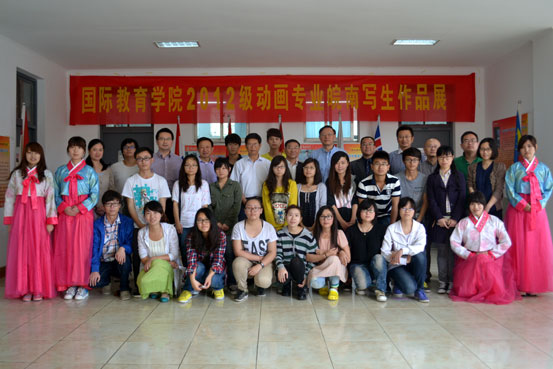 最后,全体与会领导和老师与国教院12级动画专业同学们一起合影留念。