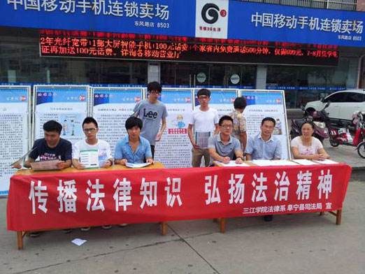 法律系“送法下乡”实践小分队7.31日-8.7日在盐城市阜宁县就和百姓生活密切相关的法律知识走上街头宣传,开展了为期7天的普法宣传活动,目的将法律带进千家万户,让所有市民懂得自己应当拿起法律武器来维护自己的合法权益,同时也为beat365大学生提供了理论与实践相结合的平台。此次活动同时也得到了盐城市阜宁县司法局的大力支持。在实践过程中,加深了与当地群众的接触,利用所学法律知识为他们答疑解惑,比如关于房屋拆迁的问题等等。