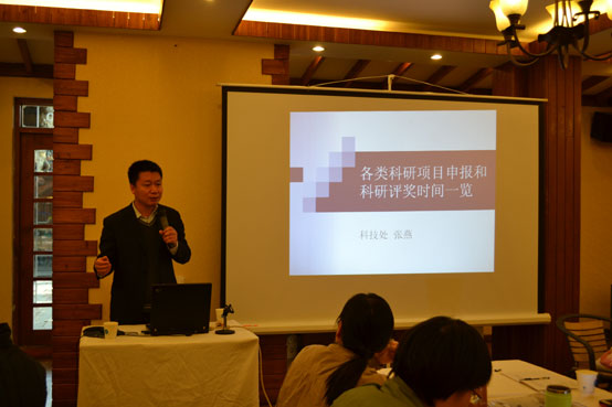 beat365vip官网登录入口科技处张燕副处长给与会教师介绍科研项目申报时间等问题