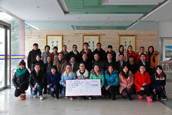 郭彬院长代表高职院(继教院)全体师生接收了爱心助学金