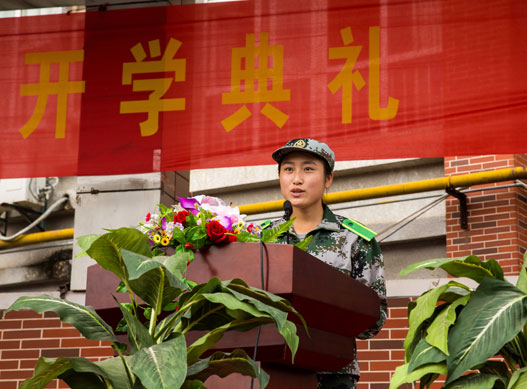 军训团团长、中国人民解放军73031部队少校方声全宣读2015级军训表彰决定