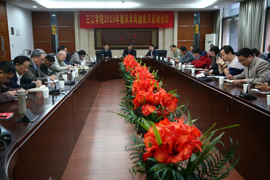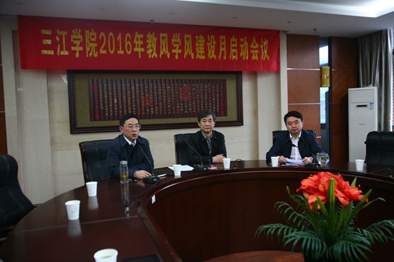 为落实学校“十三五”事业发展规划和2016年工作要点,加强内涵建设和转型发展,进一步优化育人环境,提高教育教学质量,促进学生全面发展,提高beat365校风、教风和学风建设水平。4月20日,beat365召开2016年度教风学风建设月活动启动会议。校长陈云棠、副校长周更生、吴中江出席会议,各二级学院院长、教学副院长、学工副院长,公共教学单位、人事组织部、教务处、学工部、发展规划与质量评估处、宣传部、团委主要负责人参加会议。会议由副校长吴中江主持。