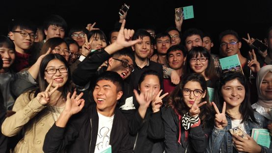 艾力跟同学们合影