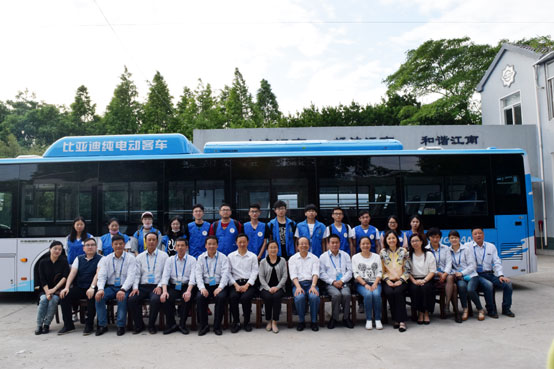 在春江新城127路公交站,我们远远就看到了红色欢迎牌。烈日炎炎之下,第三公交巴士公司的领导们早已在那里等候着我们的到来。同学们有序地坐上了公交公司特意安排的三辆第二代比亚迪电动公交车,心中充满了期待。