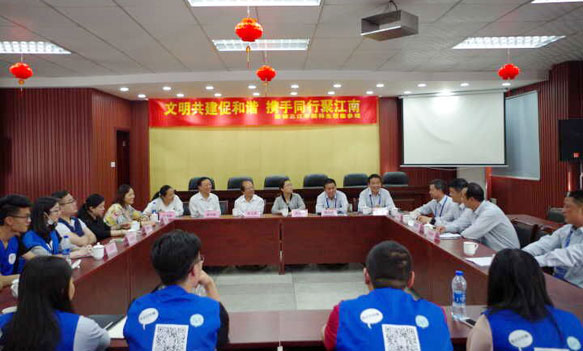 参观完毕,我们一行人来到第三巴士公司总部,与公司相关人员一起参加了题为“文明共建促和谐,携手同行聚江南”的座谈会。在座谈会上,我们观看了江南公交公司的宣传片,胡小祥经理进一步为我们讲解了第三巴士公司的过去、现在以及对未来的期待。随后郑玉琪院长详细介绍了国教院和外语学院的发展情况,对未来双方的共建工作提出了要求。国际教育学院学生会主席王冰洁代表同学们向第三巴士公司所发出的邀请表示诚挚的感谢。黄年根副院长也强调了“加强共建,有来有往”的发展理念,他结合学生的实际情况,要求我们要向企业学习。最后,江南公司纪委高晓玲书记做了总结讲话。高书记强调了政府与企业,人民群众与企业之间的关系,公交工作应始终秉持“为人民服务”的理念,对今后的共建工作表达了“更有特色、参与度更高、合作更多”的期待。