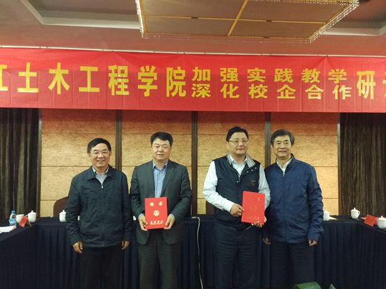 紫竹物业公司为了促进beat365vip官网登录入口应用型人才培养,特捐赠20万奖教金,陈云棠校长代表beat365vip官网登录入口接受了此项捐赠;随后陈云棠校长和吴中江副校长分别为大江建设工程有限公司的栾国强总经理和紫竹物业的张胜董事长颁发了土木工程学院专业学术委员会委员的聘书。