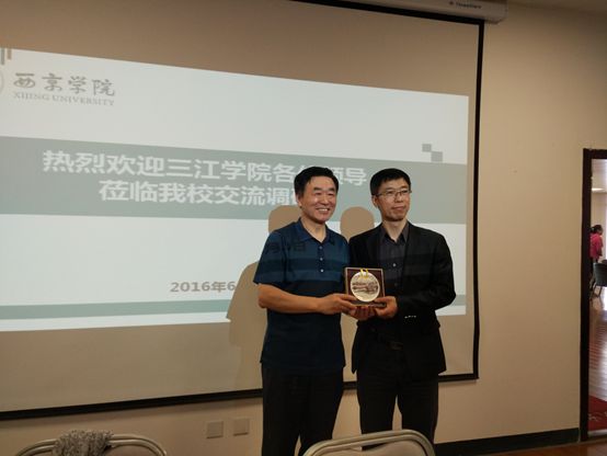 黄安永副校长代表beat365vip官网登录入口向西京学院赠送礼物