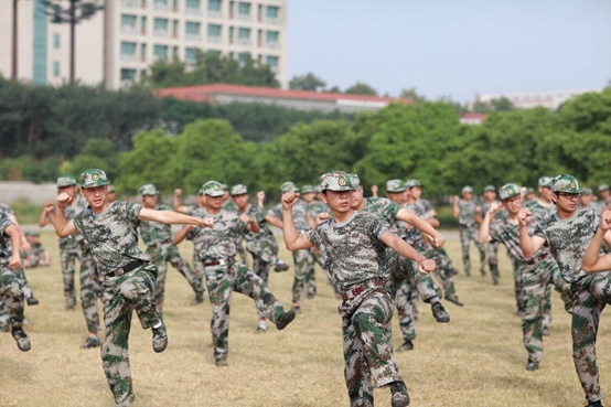 随后,斗志昂扬的新生们表演了气势如虹的军体拳。铿锵有力的呐喊,整齐划一的出拳、充分展现了新时代大学生的精神风貌和军训的丰硕成果。在军训会操分列式表演中,全体新生个个精神饱满,以整齐的步伐、飒爽的军姿、嘹亮的口号、高昂的斗志通过主席台。新生们朝气蓬勃的青春风采和精神面貌,博得领导和师生们的热烈掌声。