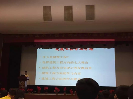 第二阶段:系专业介绍,系统了解专业。土木工程专业和工作管理专业分别在三江会堂和学术报告厅进行了系统的专业介绍。土木工程专业围绕建筑工程、路桥工程和地下工程三个培养方向,工程管理专业围绕项目管理和工程估价、房地产开发和物业管理两个方向面以及工程造价专业,分别就专业设置、学习要求、专业发展等方面开展了详细的专业介绍。