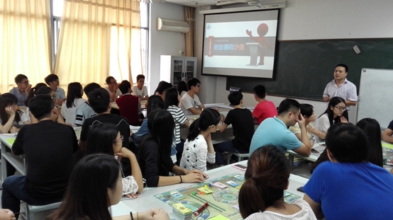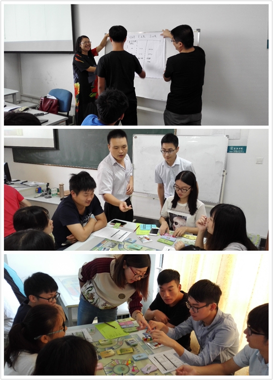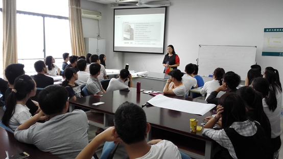 当天的培训分为“创客与创业”和“创业沙盘推演”两大部分。王维博士详细的介绍了当前的创业环境,生动详实地分析了大学生就业现状以及创业的发展趋势,深入浅出地讲解了创造性思维与创新方法的基本理论及方法,指导同学们如何认知新环境下的创业过程,如何进行创业设计,构建初创新企业。她结合实际案例通过小组讨论、头脑风暴等形式授课,课堂气氛活跃,同学们学习热情高涨。互动交流环节同学们发言积极踊跃,大胆地表达了自己创业方面的见解和困惑,王维博士一一进行解答,并做了现场指导。