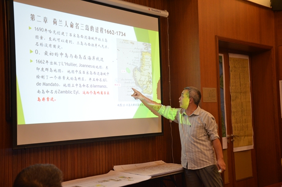 国家海洋局国际合作司于2016年9月23日上午在北京召开了由该司张司长亲自主持的“基于西方地图文献的黄岩岛地名沿革”项目鉴定与验收会。中办某局、外交部条法司和边海司、教育部社科司、国家测绘局地图技术审查中心等部门的领导,国家图书馆、社科院边疆所、社科院历史所、广西社科院东南亚研究所、厦门大学、南京大学、北京大学、南京师范大学和科学出版社的专家教授,共22位参加了鉴定与验收会。