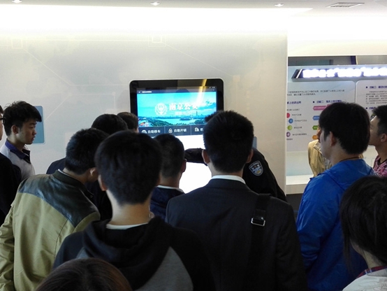 我们应邀参观了南京公安指挥中心和南京公安微警务体验区。在南京公安指挥中心,讲解警官向我们详细介绍了该中心的基本情况、强大功能以及在日常警务活动中发挥的积极作用。在南京公安微警务体验区,我们了解到目前南京市关注、使用该微警务平台的相关数据,进一步熟悉和体验了该微警务的一些与大学生息息相关的功能,使我们深刻体会到科技创新和进步在警察为民服务方面带来的便捷。一同参加此次警民开放日活动的还有南京市银行系统的同志们。