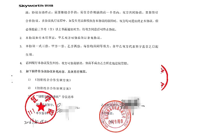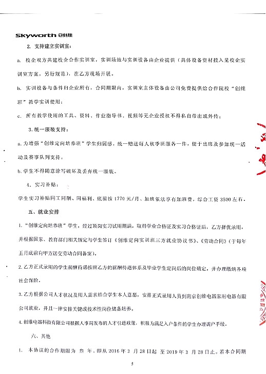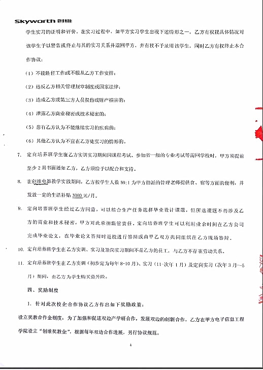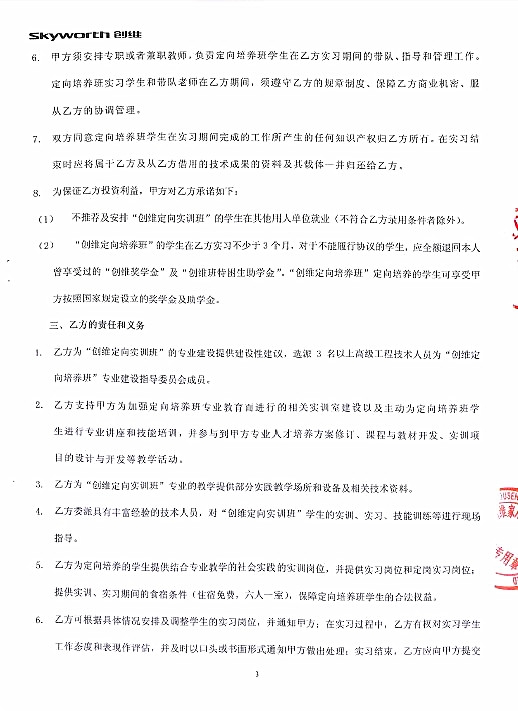 附:创维电器校企合作实训实习培养协议