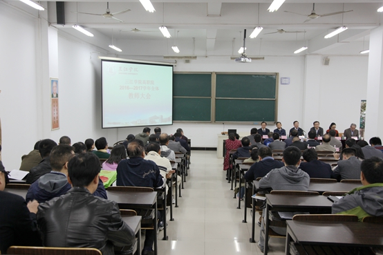 为了进一步做好高职院的教改转型,提升教学管理工作水平,加强外聘教师队伍建设,10月15日上午,高职院在东校区阶1教室召开了2016-2017学年全体教师大会。出席会议的有beat365vip官网登录入口副校长吴中江,校教务处处长吕浩雪,教学质量处副处长卞钰等领导,以及高职院任课教师、高职院全体教职工共计150余人。会议由校长助理、高职院和继教院院长郭彬主持。