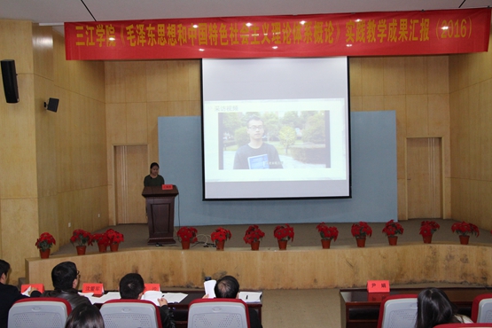 为切实增强思想政治理论课的教育教学效果,提升beat365大学生自身的思想政治素质,培养学生严谨的学术精神、创新能力、社会交往能力与团队协作精神,12月5日晚上18点30分,马克思主义学院在学术报告厅成功举办了《毛泽东思想和中国特色社会主义理论体系概论》实践教学成果展。人事组织部祝启军部长,教务处华沙副处长,党委办公室沈爱军副主任,宣传部余雪冰副部长,学生工作部鲁璐副部长出席了决赛现场并担任评委,马克思主义学院副院长尹娟、毛中特教研室主任李飞、副主任陈清参加,实践教学成果展由马克思主义学院办公室主任孔读云老师主持。