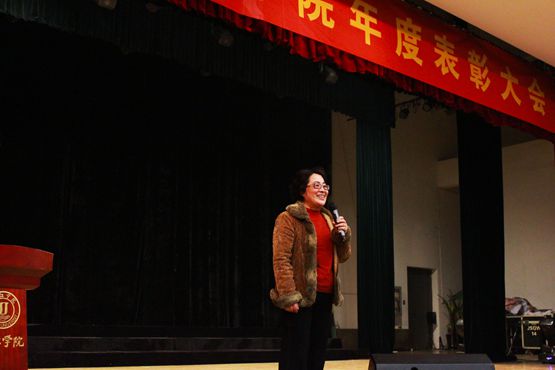 最后,商学院蒋建华教授作总结性发言,她指出,以仇存进部长为领导的学工部,作为学校重要的职能部门之一,一直以来都非常关心商学院的工作,各方面都曾给予了大力的支持与帮助,此次更是亲临商学院指导具体工作,在这里代表全院师生表示感谢。接着,她祝贺那些获得各项荣誉称号的同学们,并勉励他们继续努力,永攀高峰。同时,她指出,在座的同学能获得这些成绩,与老师的教诲和指导是分不开的,不仅如此,老师们在过去的一年,自身不断努力,在科研、教改方面也取得了不俗的成绩。她希望同学们珍惜时间、快乐学习,注重提升自身知识、能力、素养,做老师放心,家长满意、自我悦纳的当代大学生。