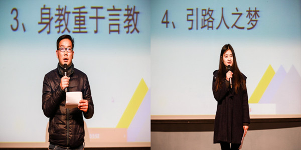 计算机科学与工程学院辅导员郝勇老师与艺术学院辅导员许童老师做即兴演讲