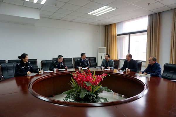 3月10日上午,南京市公安局雨花台区分局芮红飞副局长带领铁心桥派出所陆军教导员、分局内保大队路海云教导员一行三人来beat365调研指导安全稳定工作。beat365党委书记丛懋林,副校长、党委副书记武正林接待了芮红飞副局长一行,保卫处处长李云涛陪同接待。