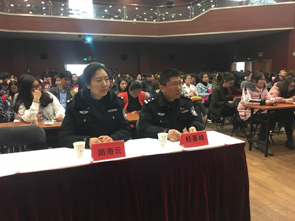 雨花台区公安分局内保大队桂著峰大队长、路海云教导员等参加讲座