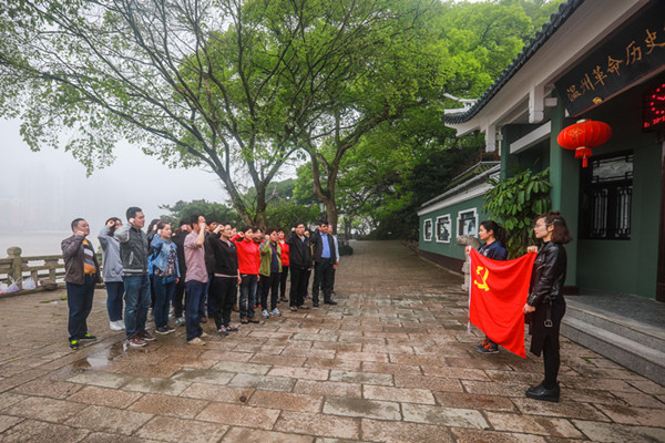 在温州革命历史纪念馆前,全体党员重温入党誓词