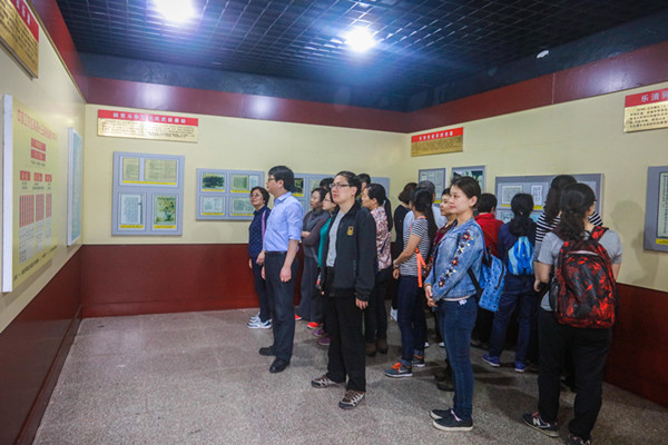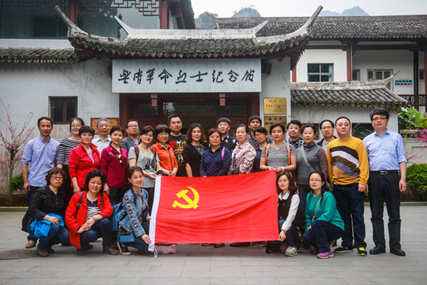 在乐清革命烈士陵园,青石门额刻有粟裕将军题写的“雁荡山烈士墓”六个大字,13米高的纪念碑屹立在烈士陵园正中,上刻《雁荡山革命烈士纪念碑志》,“雁荡山革命烈士纪念碑”十个苍劲的大字是张爱萍将军的手书,烈士墓背后狮子峰的悬崖峭壁上刻有“为国牺牲”四个大字,非常醒目。现场气氛庄严肃穆,参加活动的全体党员怀着无比崇敬的心情瞻仰默哀,缅怀先烈,寄托哀思。之后,大家一起参观了乐清革命烈士纪念馆,纪念馆共有四个展厅,分成五四运动与大革命时期、土地革命时期、抗日战争时期、解放战争和社会主义建设时期四个部分,同时陈列了大量的革命文物。整个展览史料翔实,事迹感人,图文并茂,形象鲜明,堪为一部生动感人的爱国主义和革命传统教育的史诗。在温州革命历史纪念馆前,全体党员面对鲜红的党旗重温了入党誓词,铮铮誓言,表达了对革命先烈的崇敬之情和对党的忠诚与热爱。
