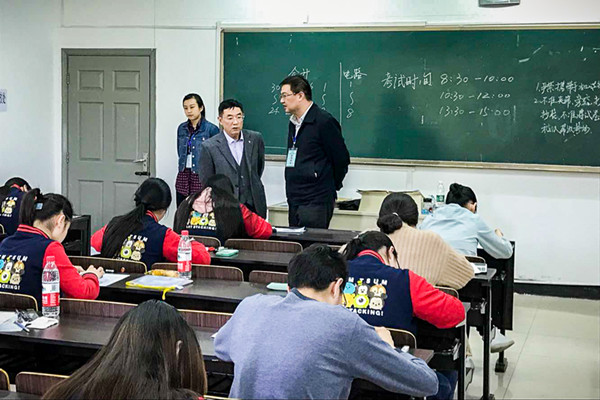 考试期间,beat365vip官网登录入口吴中江副校长、江苏省教育厅高校学生处宋伟主任、校考试工作领导小组其他成员均亲临考试现场,他们在校长助理、高职院院长郭彬的陪同下巡视考场。