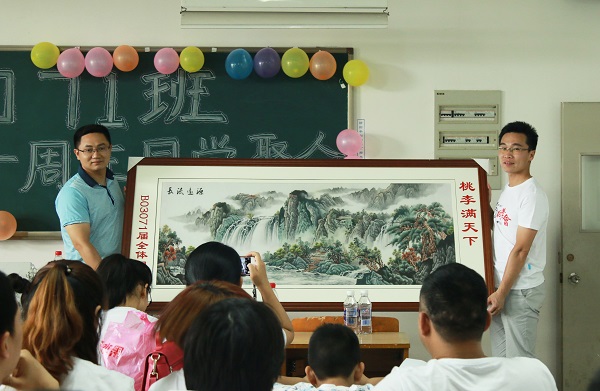 为表达对母校的感恩之情,同时也为了纪念十周年返校相聚之情,校友们向母校赠送了纪念品。活动结束后,校友们漫步校园,回味当年食堂味、足球赛、篮球赛、图书馆、三江牛、情人坡等,并合影留念。