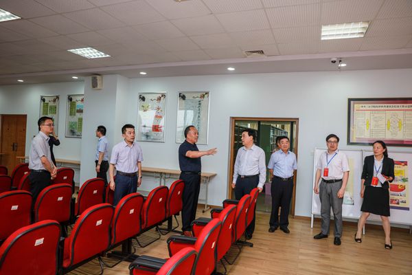 汇报结束后,考核组对照学校考评自查报告详细查阅了相关支撑材料,实地走访了各基层单位的党建开展情况,先后实地走访了图书馆党建研修室、党务活动室、廉政文化展、京东实验室、移动互联云管理实验室、文新院演播大厅等。