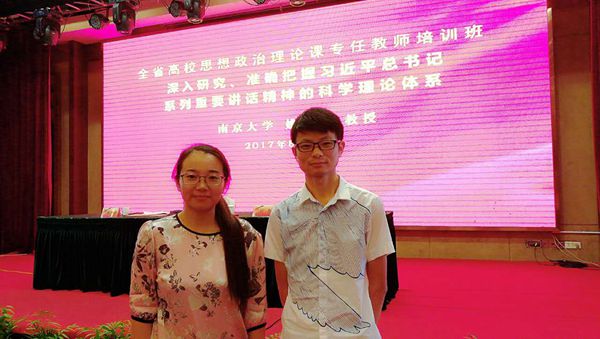 此外,马院陈清老师参加了由教育部主办的“第39期全国普通高校‘形势与政策’课骨干教师培训班”,冯昌雨老师参加了南师大举办的“江苏省‘形势与政策’课骨干教师培训班”的学习。