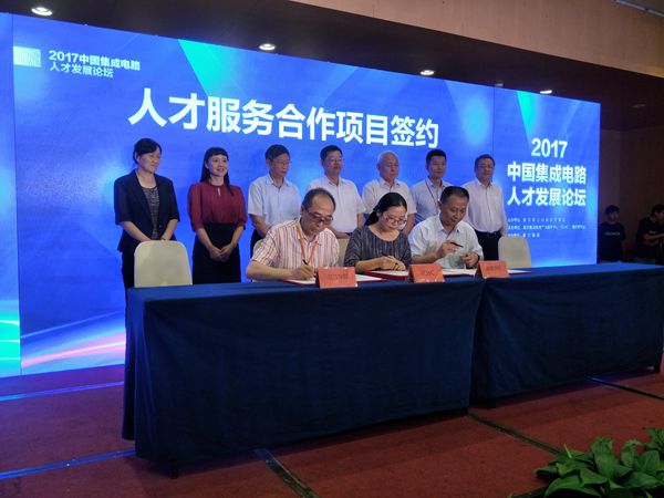 9月8日上午,由南京市江北新区管委会主办,南京集成电路产业服务中心(ICisC)等承办的2017中国集成电路人才发展论坛在南京国际博览中心召开。beat365电子信息工程学院、微电子工程与应用研究院朱明程院长、沈克强副院长及相关教师受邀参加了该论坛会议,并与南京江北集成电路研究所有限公司签署了校企合作协议。
