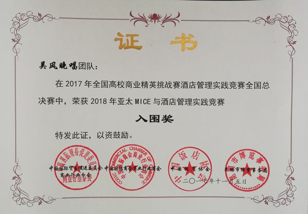2018年亚太MICE与酒店管理实践竞赛入围奖
