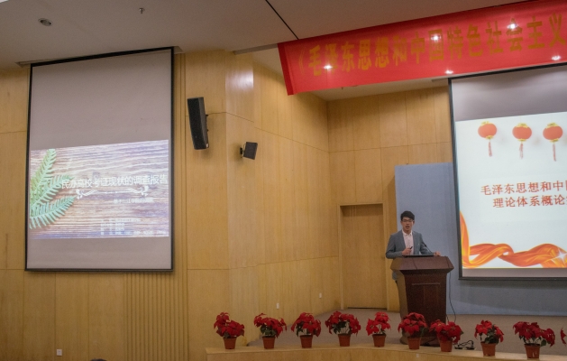 11月24日下午2点,马克思主义学院第二届“毛泽东思想和中国特色社会主义理论体系概论”实践教学成果展在学术报告厅成功举办。党委办公室副主任沈爱军,学生工作部副部长鲁璐,招生就业中心副主任郁政宏,马克思主义学院副院长尹娟,马克思主义学院“毛泽东思想和中国特色社会主义理论体系概论”教研室主任李飞出席了决赛现场并担任评委,实践教学成果展由马克思主义学院办公室主任孔读云主持。