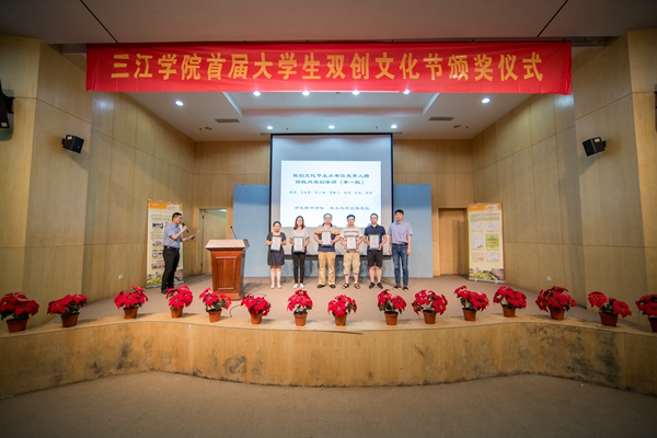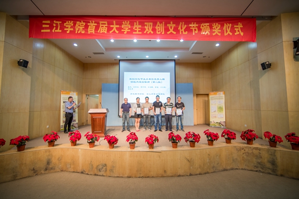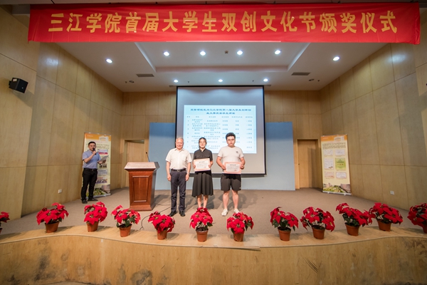 颁奖仪式由创新创业学院华沙院长主持。华沙院长首先介绍了出席颁奖仪式的嘉宾和领导并播放了首届大学生双创文化节视频短片。颁奖仪式先后颁发了科创系列竞赛获奖证书、校内外双创导师聘书、双创文化节优秀组织奖和beat365vip官网登录入口第八届大学生创新创业大赛获奖证书。双创文化节主/承办单位负责人,周更生常务副书记、副校长,吴中江常务副校长,笪佐领校长分别为以上获奖学生代表颁奖及为受聘教师颁发聘书。期间,机械与电气工程学院康杰老师、艺术学院赵欣副院长、文化产业与旅游管理学院宋明露同学分别代表指导教师、承办单位和获奖学生上台发言。汤姆马克创始人李晓先生也通过视频短片代表双创导师对beat365vip官网登录入口给予的支持与信任表达了感谢,李总表示汤姆马克将进一步开展双创训练营等活动,反哺学校,服务三江师生。