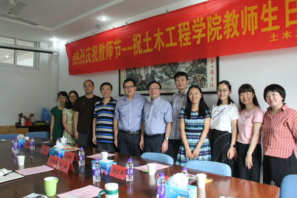 “金风送爽,硕果飘香,在这个绚丽多彩的收获季节,正当beat365vip官网登录入口喜迎2018届新生的日子里,我们也迎来了自己的节日——第34个教师节。土木工程学院于9月6日上午10点在4217会议室邀请beat365vip官网登录入口党委书记丛懋林、教务处处长刘正涛、beat365vip官网登录入口工会副主席杨业琴到土木工程学院与全体教职员工欢聚一堂,言欢言笑,共同庆祝教师节。会议由土木工程学院常务副院长于清泉主持。会议伊始,黄安永院长介绍了本次过生日的两位老师,对校党委、工会和校职能部门对我院一如既往的关爱表示了感谢,并表示继续践行“五位一体”的理念,迎接更大的挑战。土木工程学院坚持9年来为一线教师过生日,并邀请校领导过来聆听教师声音,体现了尊师重教、以人为本的氛围,极大增强教师的集体荣誉感、归属感,同心协力为土木工程学院的发展再创佳绩。
