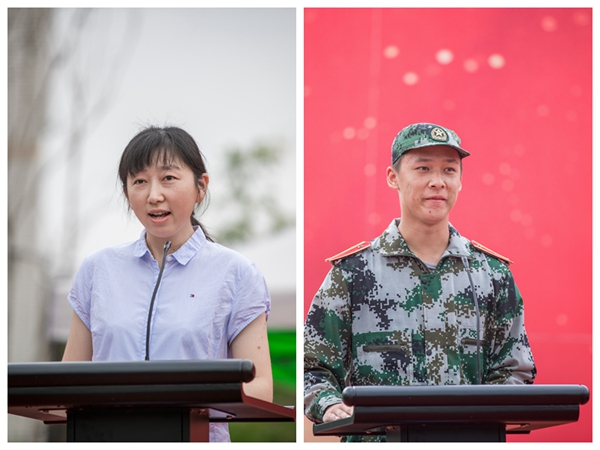 电子工程学院教师卞璐与机械与电气工程2018级学院车辆工程专业顾昕健同学在东山校区、文旅院教师汤蓉与商学院2018级财务管理专业吴晓婷同学在竹山路校区、文新院教师詹悦兰与外国语学院2018级日语专业阮清仪同学在铁心桥主桥区、艺术学院吴星乐同学分别作为教师代表、新生代表、老生代表发言。