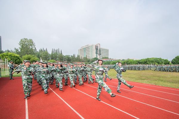 军训汇报表演开始。随后阅兵式和分列式表演拉开帷幕,接着便是斗志昂扬的军体拳表演。铿锵有力的呐喊,整齐划一的出拳、充分展现了新时代大学生的精神风貌和军训的丰硕成果。在军训会操分列式表演中,全体新生个个精神饱满,以整齐的步伐、飒爽的军姿、嘹亮的口号、高昂的斗志通过主席台。新生们朝气蓬勃的青春风采和精神面貌,赢得领导和师生们的热烈掌声。