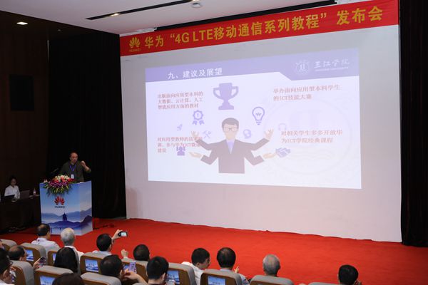 金秋送爽,丹桂飘香。9月27日,由华为技术有限公司主办,几个高校联办的全国高校电子信息类专业建设论坛暨“4G LTE移动通信技术系列教程”发布会在杭州华为公司顺利举行。beat365电子信息工程学院院长朱明程教授作为系列教程发起人和主编之一,率本院相关参编教师出席了会议,并做了题为《深化与华为合作,建设应用型本科品牌专业》的主题报告。