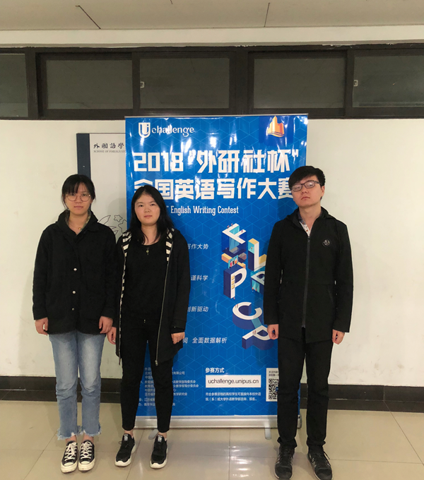 经过认真仔细的初赛选拔,外国语学院英语系的朱涵同学(指导老师:翁晓斌),吴亚祥同学(指导老师:何艳群),胡可同学(指导老师:何艳群)参加了写作大赛,朱涵同学,吴亚祥同学,胡可同学均获得三等奖。