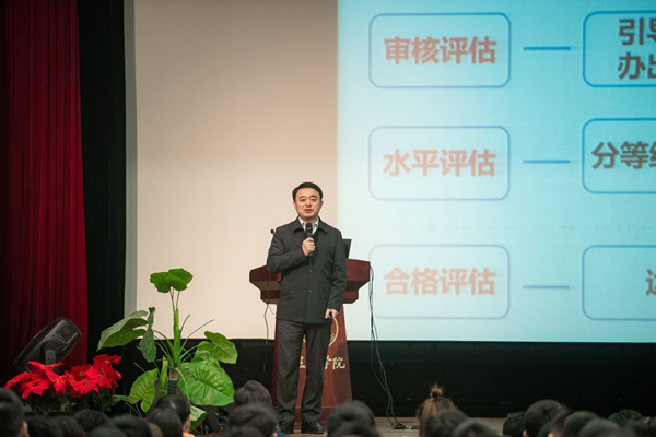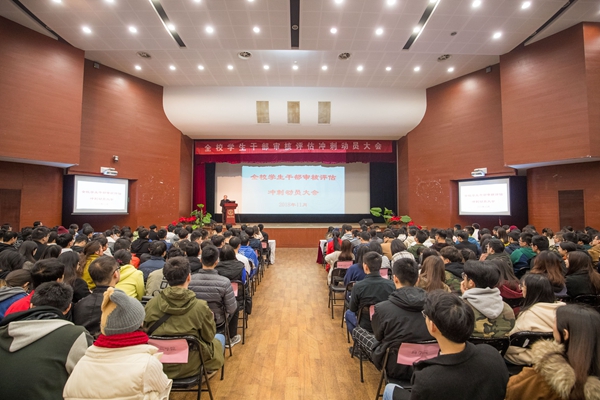 为全面强化学风建设,以良好状态迎接教育部专家组进校评估,11月24日(周六)上午,全校学生干部审核评估冲刺动员大会在三江会堂举行。各学院(校区)学生会、各班级主要学生干部及学工副院长、分团委书记参加。会议由学生工作部部长李云涛主持。