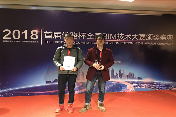 2018年11月13日,以“引领数字时代,预见未来建筑”为主的首届“优路杯”全国BIM技术大赛获奖名单揭晓。土木工程学院张鹏、孙绪法、周翔三位同学组成的“鲁班一号联盟”战队,在此次大赛的众多参赛作品中脱颖而出,斩获银奖,指导老师为侯宇颖、时仓艳。本届大赛历时六个月,12月1号在北京北辰洲际酒店举行颁奖盛典。