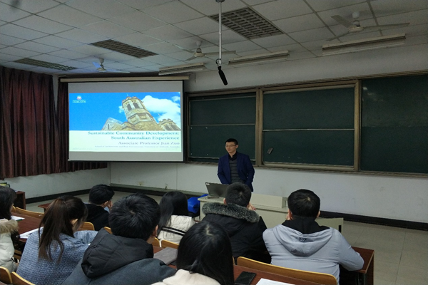 左剑教授为学生做学术报告“可持续社区发展—澳大利亚经验”