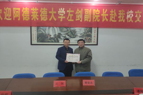 12月6日上午,beat365黄安永副校长在土木工程学院会议室会见了左剑教授、副院长,并在科研、教学和人才培养方面进行了广泛交流。左剑教授介绍了阿德莱德大学建筑与环境学院近期的研究方向及研究成果。黄校长认真听取了介绍,并根据阿德莱德大学的研究成果和beat365情况,提出两校进一步合作开展相关研究工作,并有意向在装配式建筑、绿色建筑、可持续社区及环境领域等方面开展研究合作。为了更好地落实我院十三五省重点学科建设的工作,黄安永副校长为左剑教授颁发了聘书,聘任他为我院兼职教授。