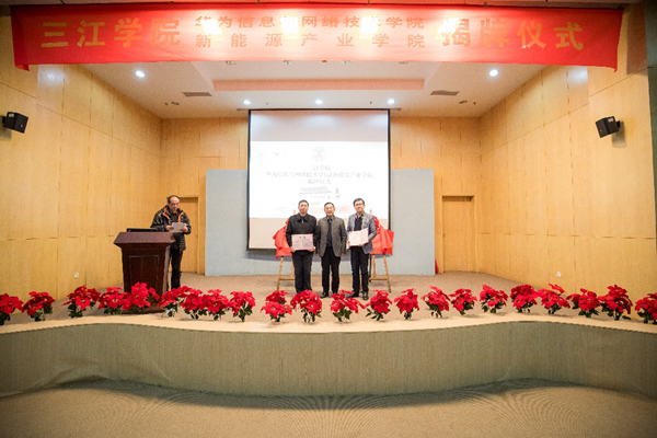 随后,教务处刘正涛处长宣布正式成立两个产业学院,吴中江常务副校长为华为信息与网络技术学院的院长宋铁成教授和新能源产业学院院长吕俊博士颁发了聘书,并一同为产业学院进行揭牌。