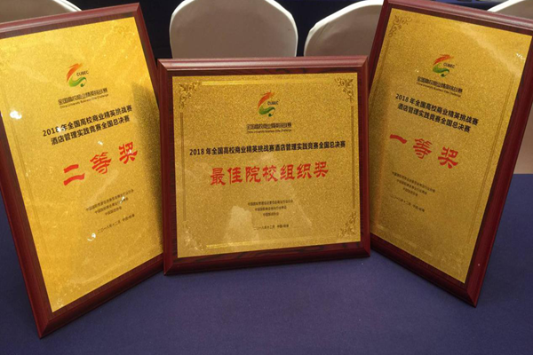 12月8日至9日,2018年全国高校商业精英挑战赛酒店管理实践竞赛全国总决赛(以下简称全国总决赛)在安徽省蚌埠市举办。竞赛共有来自北京、天津、安徽、江苏、广东、山东、陕西、江西、重庆、吉林等150多支队伍报名参赛。经过层层选拔,来自26所高校的64支队伍入围全国总决赛,齐聚安徽蚌埠“湖上升明月”,开展大比拼。beat365vip官网登录入口文化产业与旅游管理学院选送的“AIKA CREATORS”“壹肆贰捌”两支队伍全部入围全国总决赛,并在决赛中喜获佳绩,最终荣获最佳院校组织奖,获策划组一等奖、二等奖各一项,展现了文旅院学子良好的专业素质和能力。