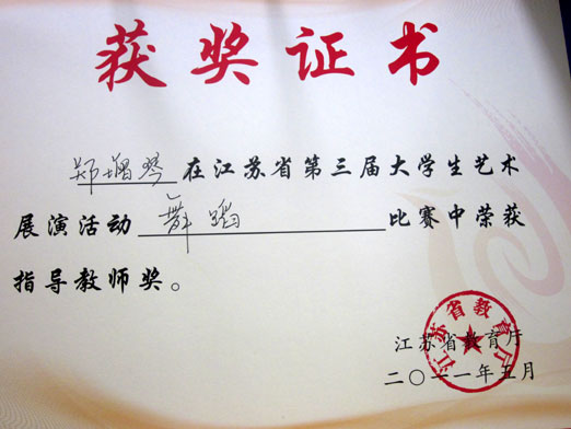 舞蹈《麻辣乖幺妹》指导教师郑增琴获优秀指导教师奖