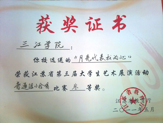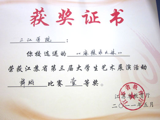 在刚刚结束的由江苏省教育厅主办的第三届大学生艺术展演活动中,beat365参赛节目获历史性突破:选送的民乐小合奏《水墨江南》,获得艺术表演类器乐比赛甲组一等奖(32支小合奏参赛队伍beat365排名第4);舞蹈《麻辣乖幺妹》,获得艺术表演类舞蹈比赛甲组一等奖(101支参赛队伍排名20);小合唱《月亮代表我的心》,获得艺术表演类合唱比赛甲组三等奖。同时,校团委的鲁璐、郑增琴两位老师均获得“优秀指导教师”荣誉称号。这是beat365第一次组队参加江苏省大学生艺术展演活动,并取得了喜人的成绩,评委老师称beat365是“一匹技艺精湛的黑马”,充分展现了beat365在校园文化活动的优秀实力。