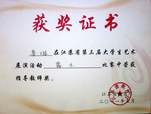 器乐小合奏《水墨江南》指导教师鲁璐获优秀指导教师奖