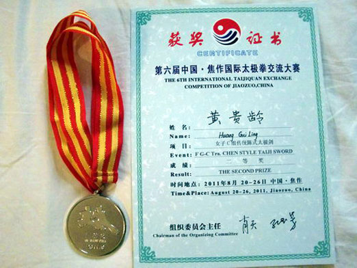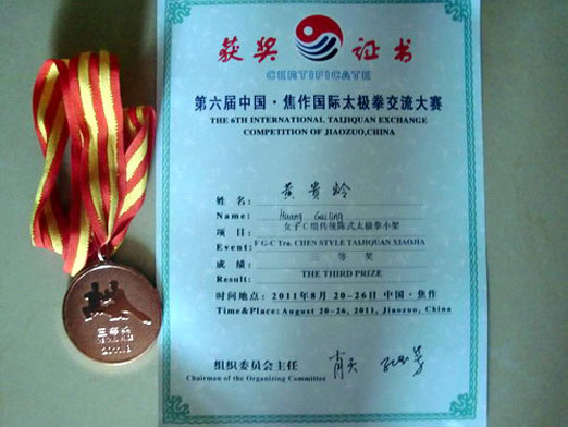 2011年8月20日至2011年8月26日,第六届中国焦作国际太极拳交流大赛在太极故里焦作隆重举行。文新院的黄贵龄同学荣获银牌、铜牌各一枚。