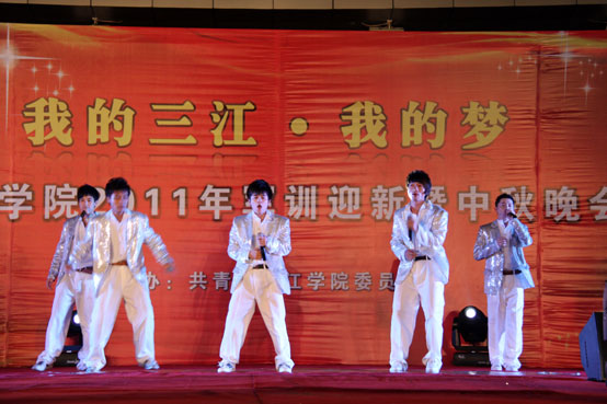 五位活力四射的男孩表演的开场秀《梦想号》拉开了晚会的帷幕。武艺精湛的《双节棍表演》、西域风情的拉丁舞《恰恰》、甜美动听的歌曲《月儿湾》、俏皮可爱的舞蹈《麻辣乖幺妹》、惟妙惟肖的京剧《三家店》、青春激扬的街舞《COLORFUl SHOW》等表演赢得了新生的热烈掌声。除了学生的节目。老师教官也参与了这场盛会,国际教育学院的方铖月老师的歌曲《在和平年代》和教官的舞蹈《菊花台》传递了对大一新生的祝福。为了让远离家乡的同学生,欢度中秋,感受家的温暖,校领导还特意在晚会期间为大一新生发月饼。一幕幕温馨的场面让学生们频频感动。